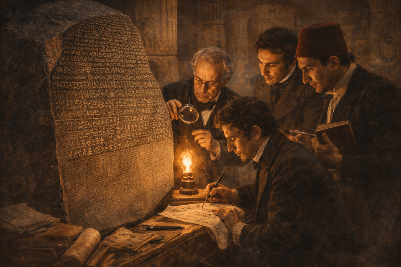 تخيل أن تقف أمام أعظم حضارة عرفتها البشرية؛ معابد شاهقة، أهرامات تخترق السماء، ومقابر مليئة بالذهب، وكل جدار فيها مغطى برسومات ورموز غريبة وطيور وعلامات لا يفهمها أحد. هكذا كان حال العالم مع الحضارة المصرية القديمة لأكثر من 15 قرناً! كانت مصر القديمة أشبه بكتاب مغلق وضاع مفتاحه، حتى جاءت صدفة بحتة في مدينة مصرية صغيرة لتغير مجرى التاريخ للأبد.