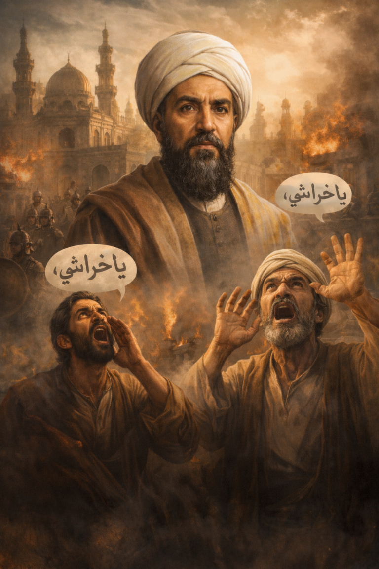 وسط هذا الظلام، برز الشيخ الخراشي كـ “حائط الصد” المنيع لعامة الشعب. كان يتمتع بشخصية قوية جداً، ومهابة لا مثيل لها، وكلمته مسموعة لدى أكبر حكام مصر. بسبب عدله وشجاعته، أصبح الملاذ الأخير لكل مظلوم. إذا سُلب حق فلاح، أو ظُلم تاجر، أو اعتدى مملوكي على امرأة، لم يكونوا يذهبون إلى القاضي أو الوالي، بل يركضون مباشرة نحو الجامع الأزهر وهم يصرخون بأعلى صوتهم: “يا خراشي.. يا خراشي!”.